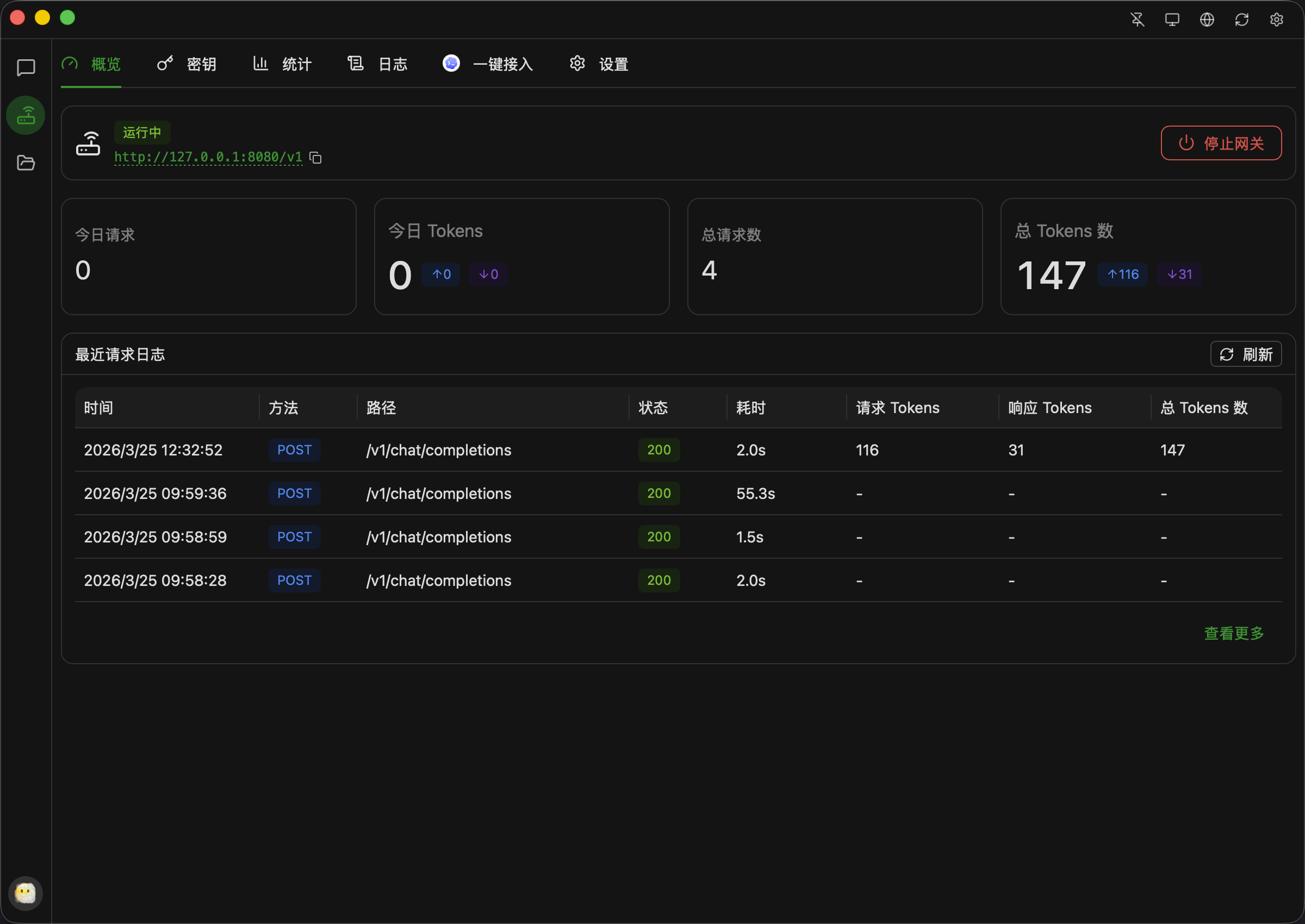 请求日志 — 完整记录所有经过网关的 API 请求与响应